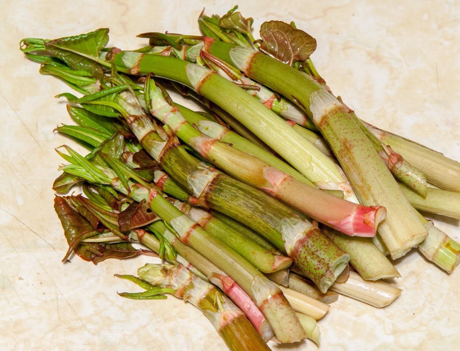 Another dreaded invasive, Japanese knotweed, Polygonum cuspidatum. Use the tender young shoots in sweet or savory preparations. Bake in pies, make a jelly, roast with herbs like a vegetable, slice thinly and eat them raw. This is a good wild plant to experiment with to find your own favorite recipes, then share them and teach others to eat more knotweed!