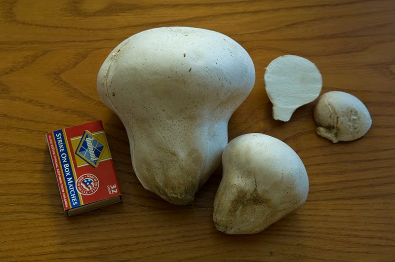 Robert separated the clusters to clean the mushroom of a few bugs and debris, and proceeded to process this monster. He sliced up enough to fill the dehydrator completely. These slices will be used to make soups in winter. He chopped up enough to put 8 pint
