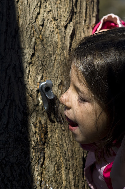 To make syrup from the maple sap, you need 40 parts of sap to make 1 part of syrup. That means you need 40 gallons of sap to make just 1 gallon of syrup! There is a reason why real maple syrup is so expensive. We did try to boil our own syrup last year with limited success.We boiled down about a gallon of sap to make just about a quarter cup of dark syrup. It was mostly an experiment to see if it could be done, and we were happy with the results.