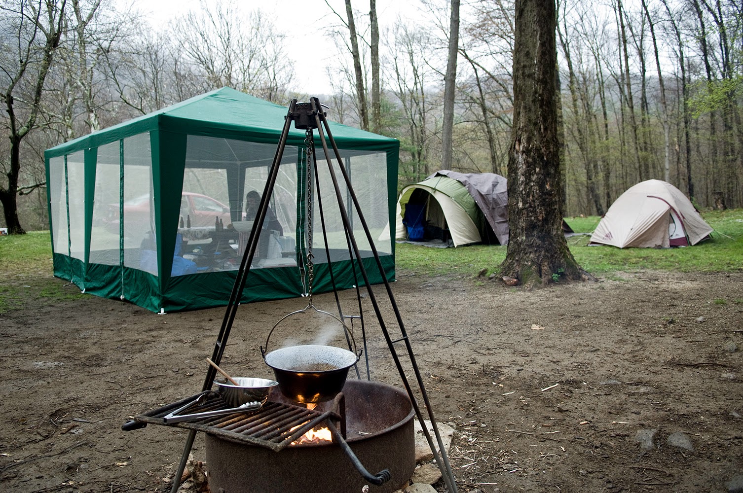 While our actual hunt only yielded 11 morels, 6 Morchella americana and 5 Morchella punctipes, we did find a good amount of tender Dryad's saddle (Polyporus squamosus) to slowly cook until browned and crispy. The season is late and chilly where we were camping, even the ferns were not yet unfurled and many trees were still leafless. Even with a thunderstorm and some night time rain, plus a flood in the screen house that needed to be drained, we still had a great time and look forward to the 2014 camping season with our fellow mushroom hunters and foragers.