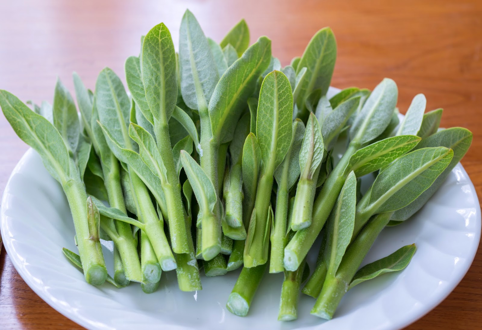 | Cut and cleaned shoots, ready to boil and eat |